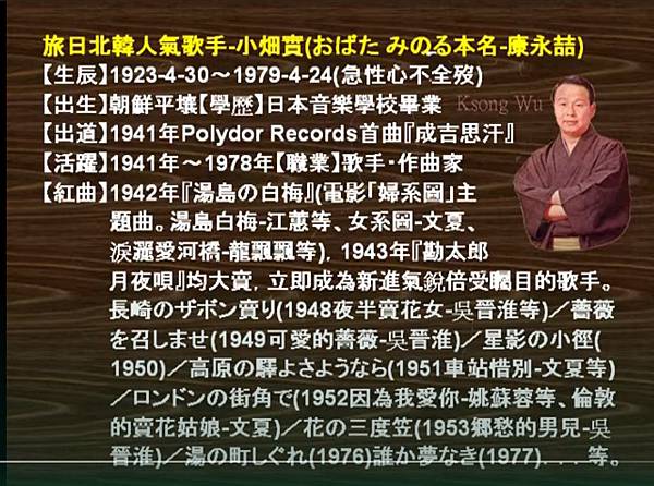 另1遺憾,在我看來似是:(故意)不提愁人文夏的演歌風格其實其來有自,正是來自日治朝鮮小畑 実也。